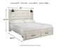 | Details | Includes headboard, footboard and rails, Made of engineered wood (MDF/particleboard) and decorative laminate, Wispy white finish over replicated oak grain with authentic touch, Large-scale hardware with dark finish, 2 decorative sconce lights, LED with 3 AA batteries, 2 smooth-gliding storage drawers, 2 slim-profile USB charging ports, Power cord included; UL-listed, Foundation/box spring required, sold separately, Mattress available, sold separately, Assembly required, Bed is not compatible with an adjustable base | |