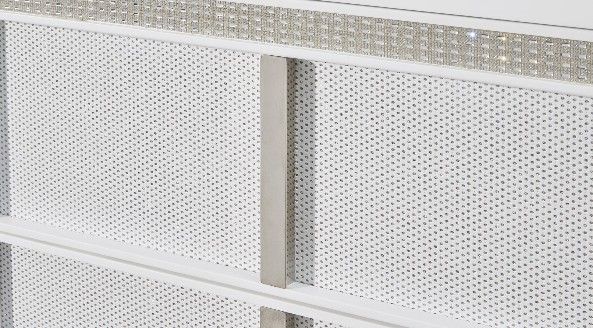Transform your bedroom with this chest of drawers. Its modern design and glamorous details create a sophisticated retreat. The built-in LED lighting and rhinestone-framed drawers add style and practical storage. Let your sanctuary shine—and never let anyone dull your sparkle.